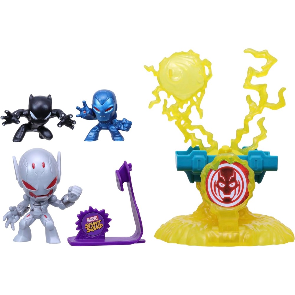 Black Panther & Iron Man vs. Ultron: Børn fra 4 år kan forestille sig det ultimative opgør mellem deres yndlingsfigurer med dette Marvel Stunt Squad Villain Knockdown Playset.