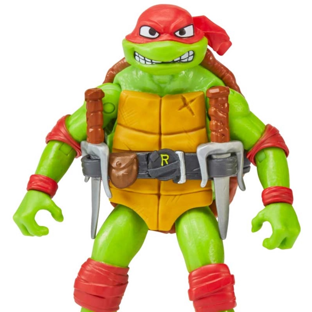 Raphael-figuren er 11,5 cm høj og designet til at matche hans filmkarakter. Sættet indeholder hans ikoniske tvillinge sais og kommer i en unik Mutant Mayhem-pakke!